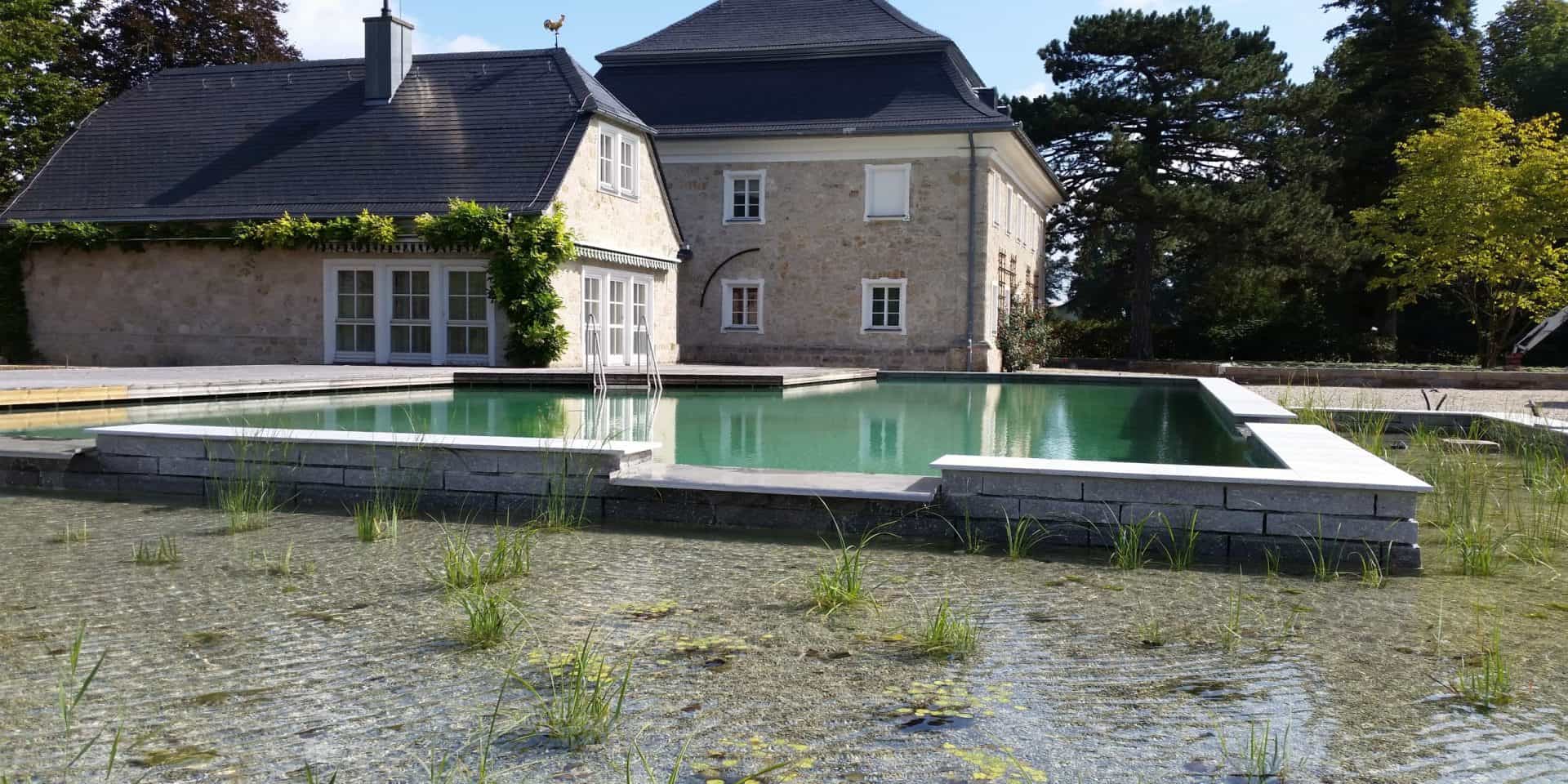 Ein RABAGS®-Schwimmteich und Naturpool verzichtet auf eine chemische Wasseraufbereitung. Die Wasserqualität wird durch das Ein